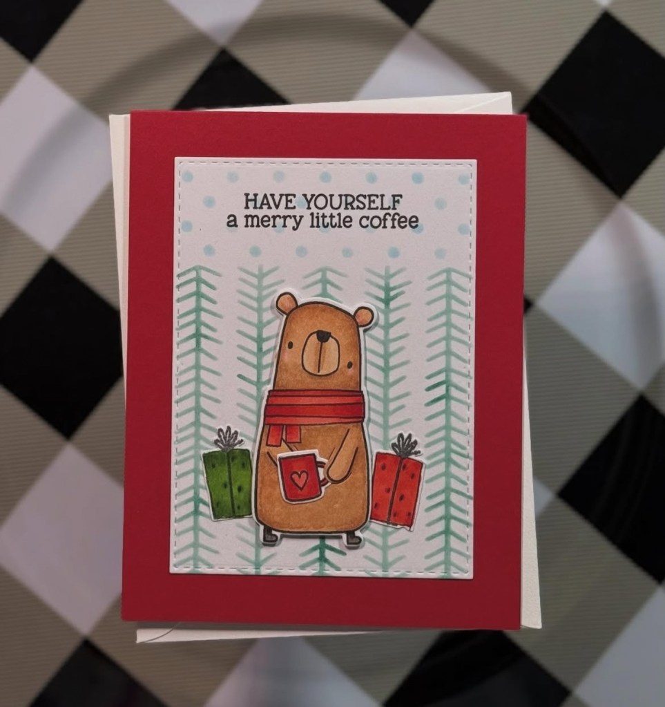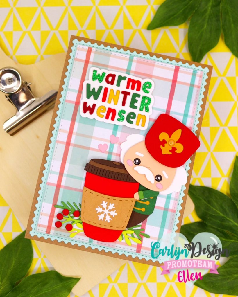 If Ellen’s card doesn’t make you smile, I don’t know what will?!…Her card is just the sweetest with that nutcracker holding the cup of coffee. And the bright and fun colors, so adorable and happy!