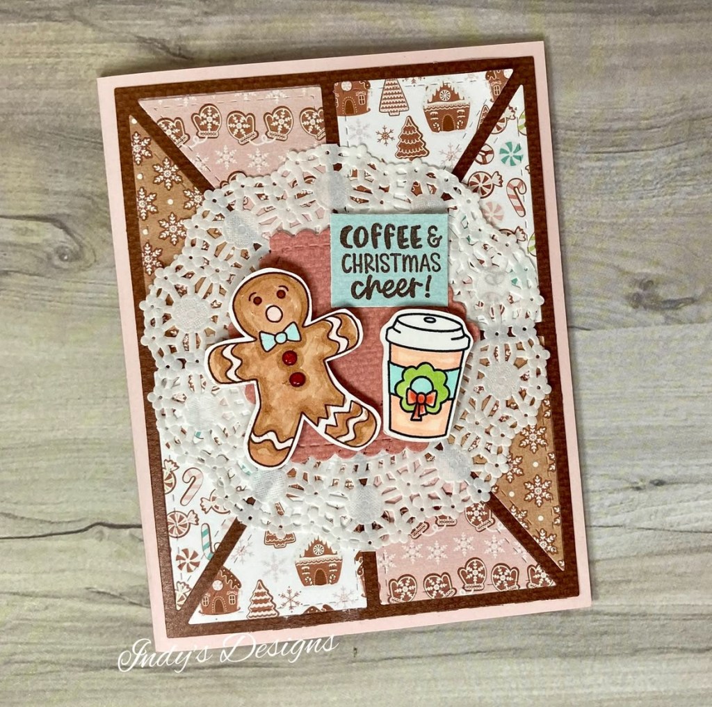 I love this gingerbread themed caffeinated card! Lots of wonderful texture and pretty patterned papers!