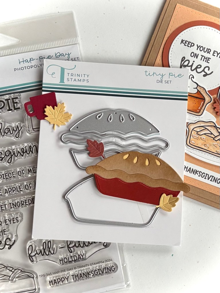 I have the Trinity Stamps Tiny Pie die set that I had planned to use but decided to leave it a la carte… That pie was much easier to make than the real thing. Just have to share a photo of it with you anyway…