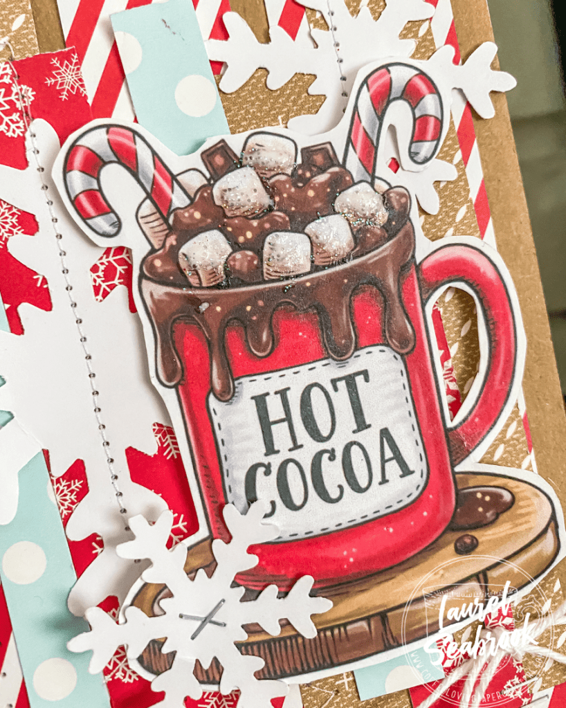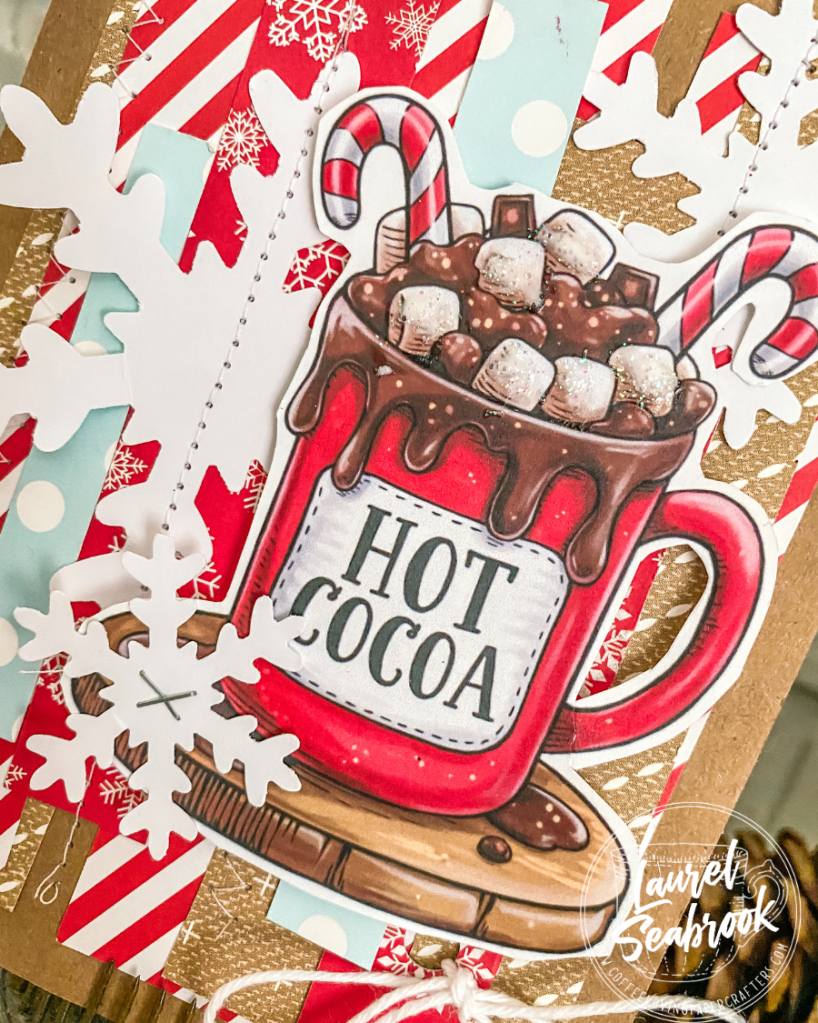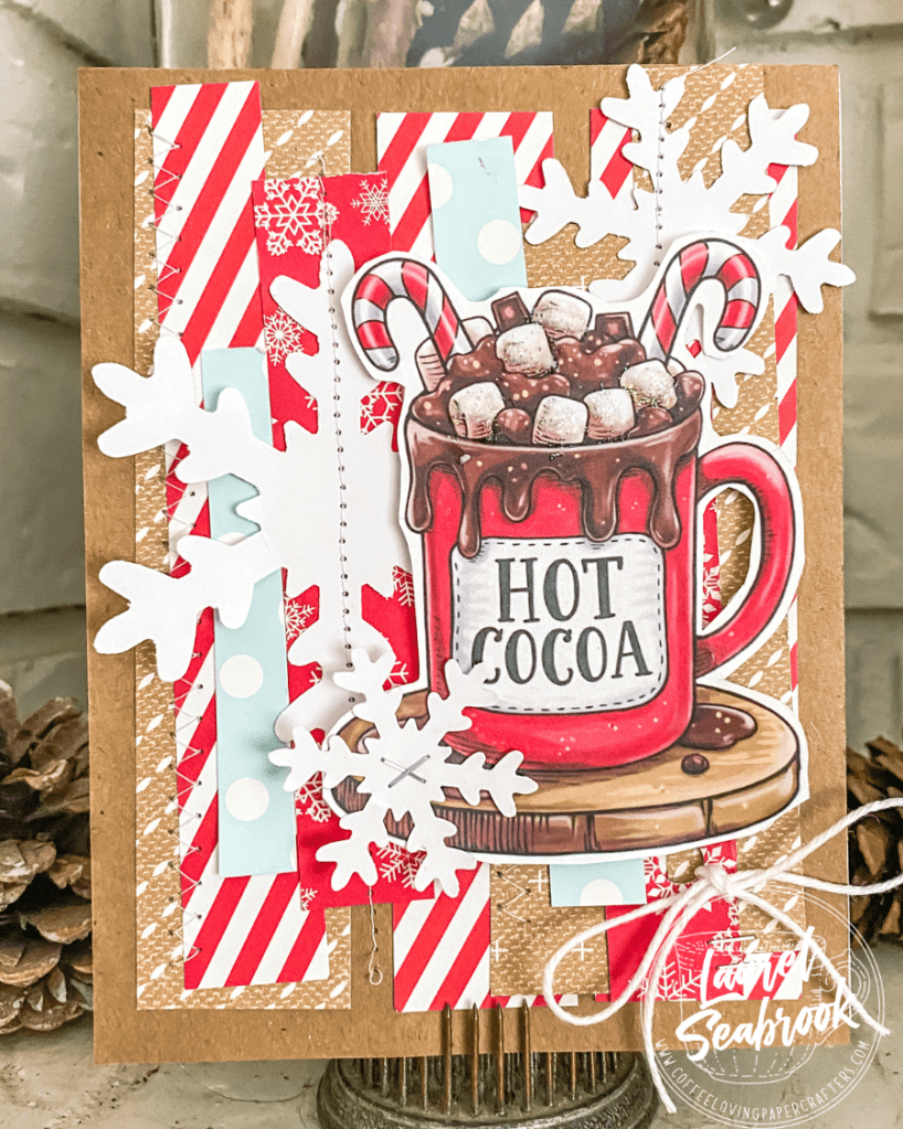Hey everyone,I am back today with a third card for this month’s Lattes & Layers challenge of Sparkle. I used a clip art image and made a scrappy background with a bunch of scraps. The main image is mounted on foam squares.