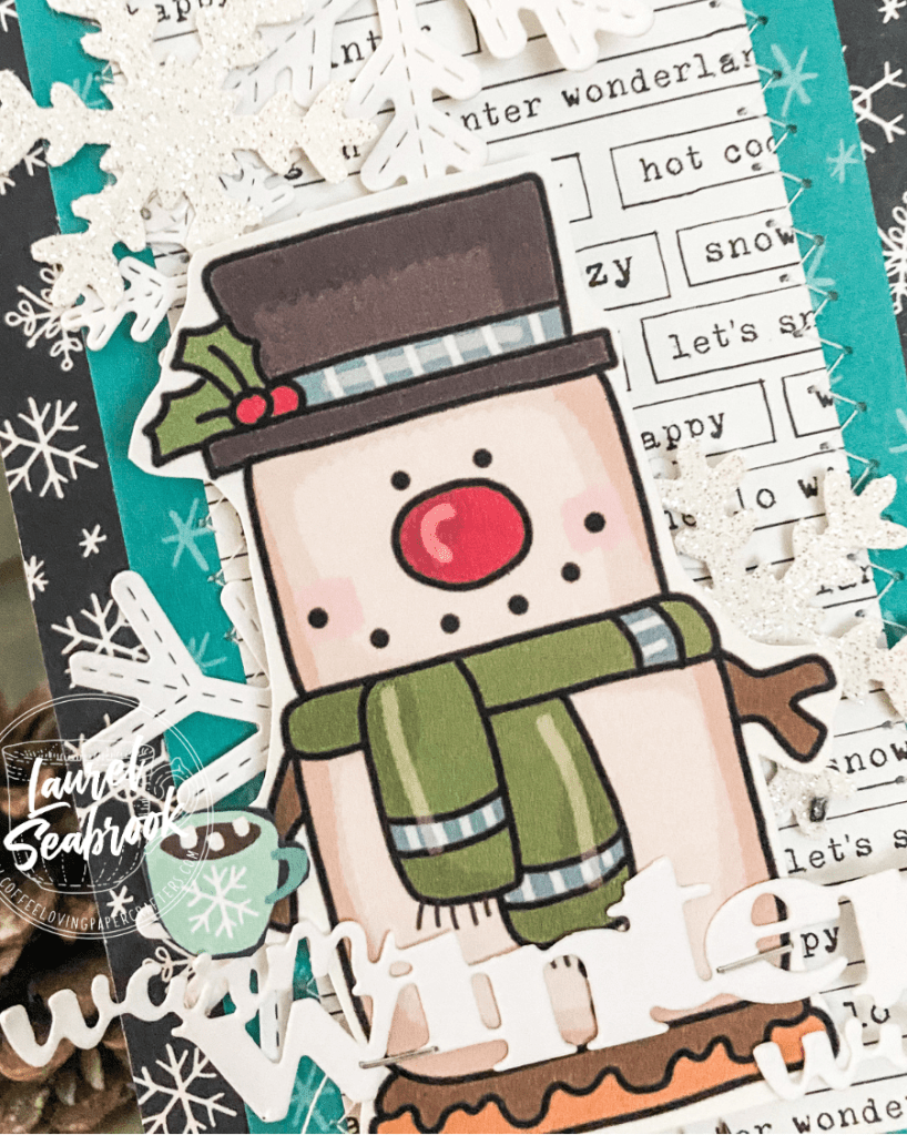 Hi again, Laurel here LOL. My final card for December. Are you celebrating tonight? Staying home? Going to bed? Either way, wishing you warm winter wishes. I have used a cute clip art for this card, you can see the whole collection Here And paired it with some Simple Stories Papers. The die is from Stamplorations