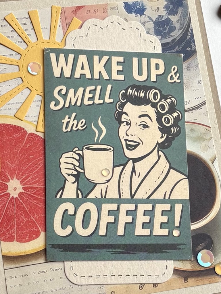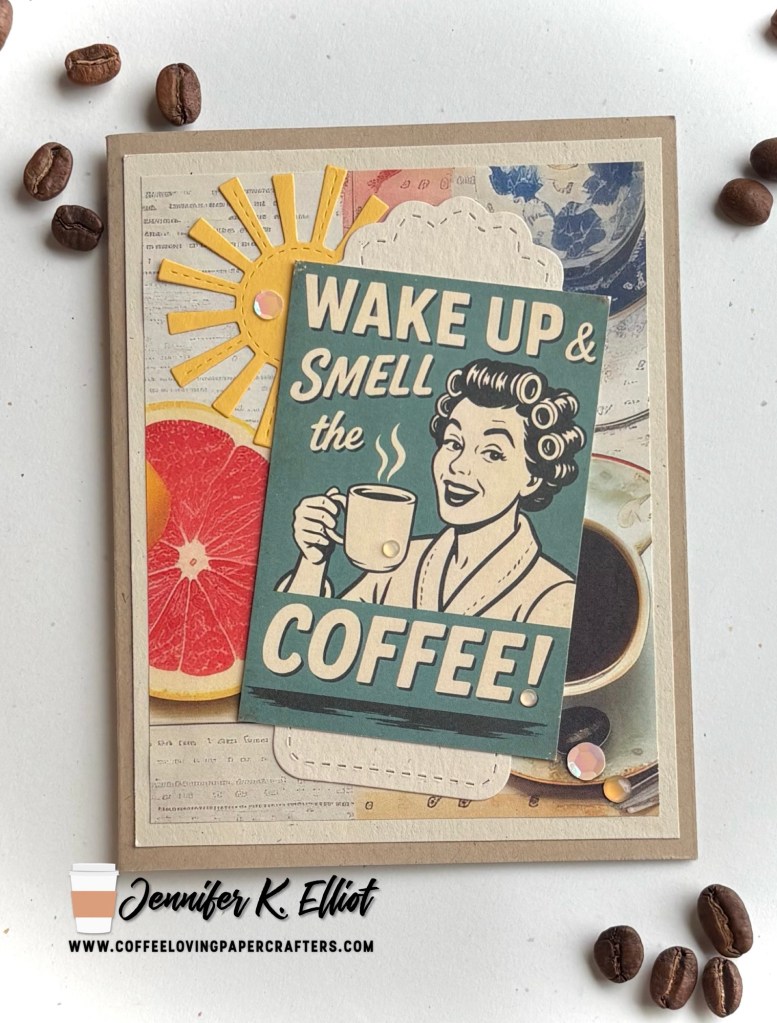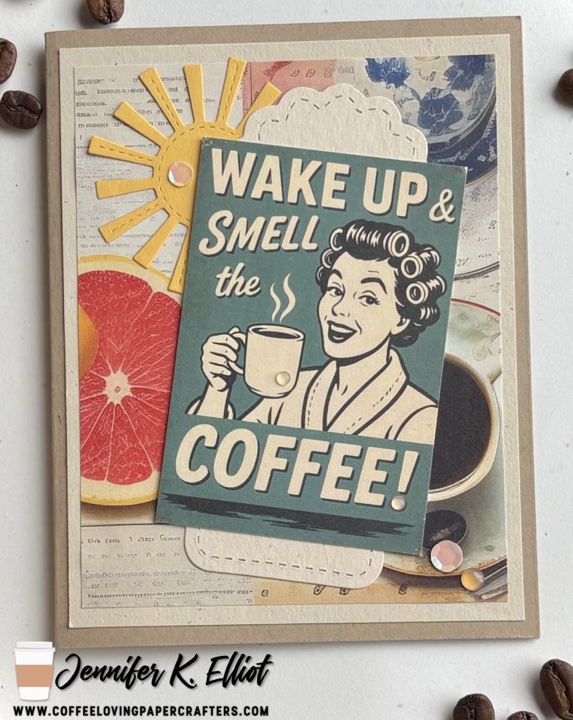 My card features STAMPlorations Retro Coffee Signs. These are fantastic, quality artist trading cards ready to layer for all kinds of fun designs.