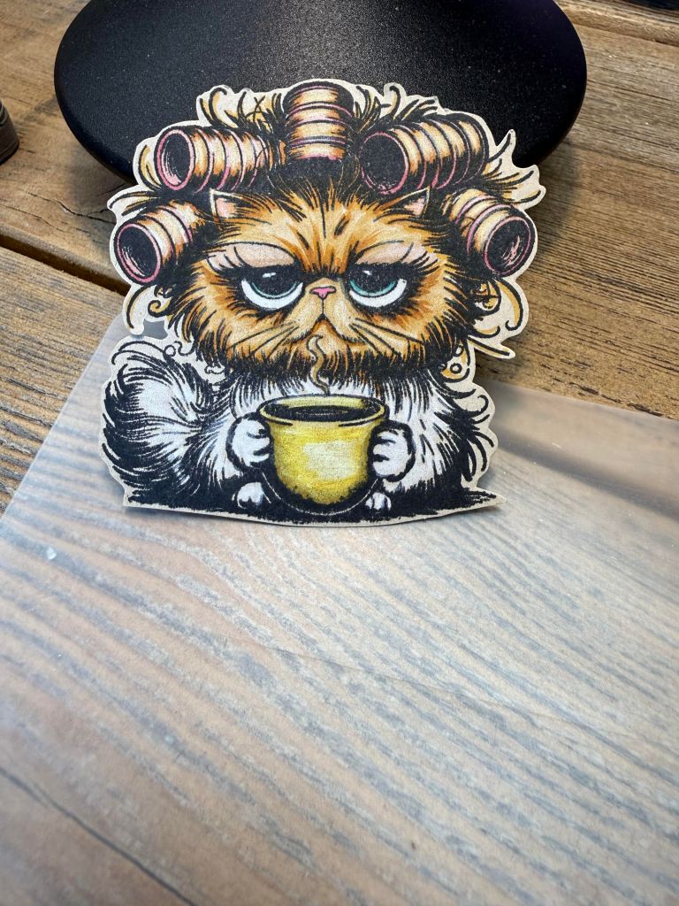 This gal has seen a lot! She wears her curlers with pride and with no fear. Makeup is on, coffee’s being had, & enjoyed. At the same time, she realizes, it is preparing her for the long day of adulting ahead. Hope this gives you a grin or even a chuckle!